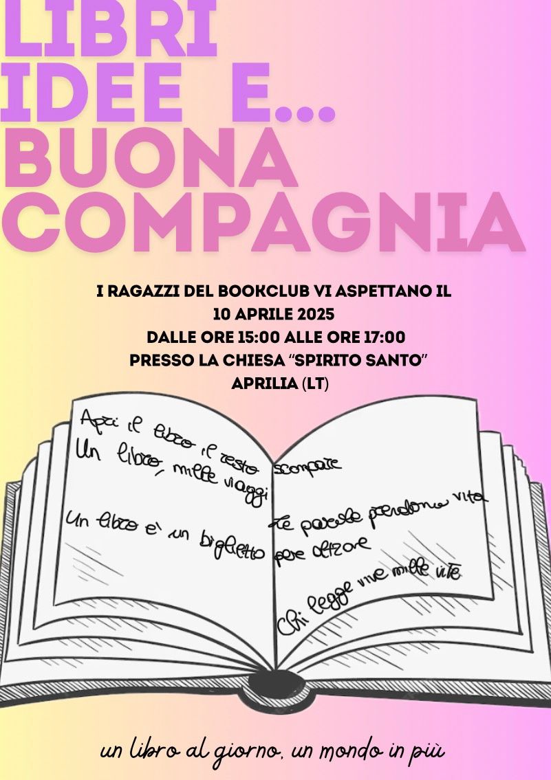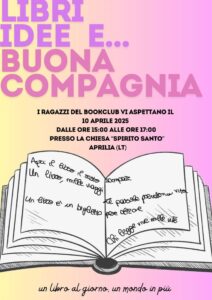 Gli studenti partecipanti al Pcto Book club il 10 aprile, dalle 15 alle 17 presso i locali della Chiesa Spirito Santo in Aprilia, condivideranno la passione per la lettura attraverso la lettura di passi scelti, tratti da opere celebri. Si invitano gli studenti del Liceo a partecipare per diffondere messaggi di Amicizia, Speranza, Inclusività.